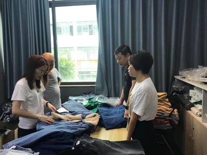 为进一步做好产品设计开发,服务好公司核心客户,近日品牌中心设计开发人员和牛仔事业部业务员一同前往公司货源基地进行设计研讨。