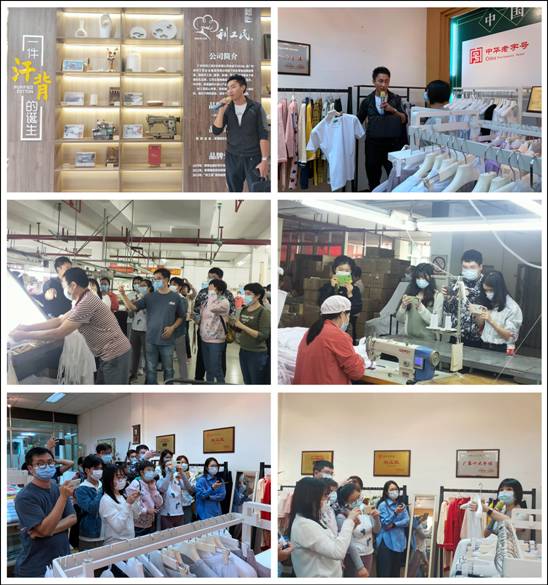 培训的实拍课程给了学员一个有挑战的主题:拍好利工民的故事。在详细了解了利工民的过去、现在和未来发展方向之后,夏老师将学员分成“传承组”与“创新组”,以“一件汗背的诞生”为题,在利工民的车间、产品展示厅和历史介绍区进行取材拍摄,手把手带领学员利用好理论课的知识,从拍摄流程、角度、画面、音效等方面进行现场指导。最后学员们发挥创意制作出多条利工民汗背衫的短视频。