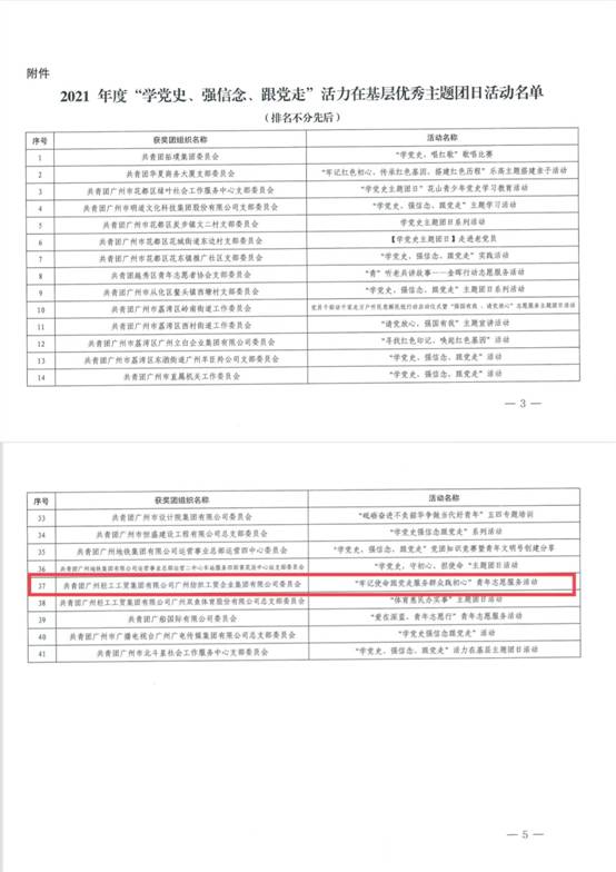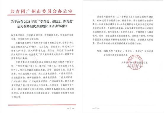 近日,经团省委综合评审,广州市有20个团(工)委和21个团(总)支部获评2021年度“学党史、强信念、跟党走”活力在基层优秀主题团日活动。新利在线官网团委申报项目“牢记使命跟党走 服务群众践初心”青年志愿服务活动榜上有名,受到团市委表扬。