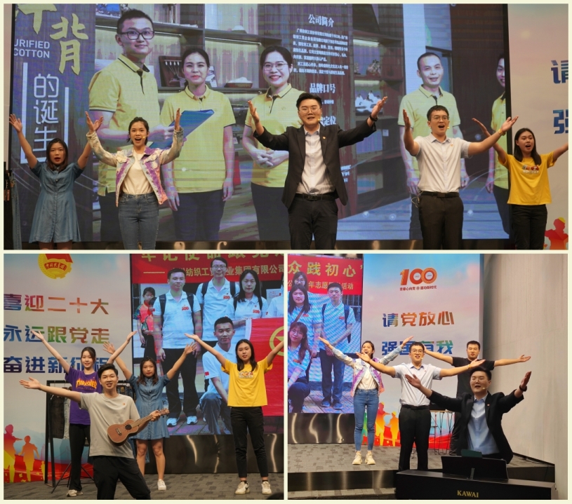 此次团课从弹奏歌曲《我们的生活充满阳光》引入课程,用三个关键句配以三个不同时期(广州纺织业创业之初、党的十八大以来、党的十九大以来)公司青年的奋斗事迹进行讲述,激励新一代纺织青年传承优良传统,继续努力发挥生力军和突击队的作用。最后,以广州共青团庆祝建团百年原创歌曲《闪亮》的高潮部分作为结尾,呼应前面引入的歌曲,充满青春气息和无限希望。