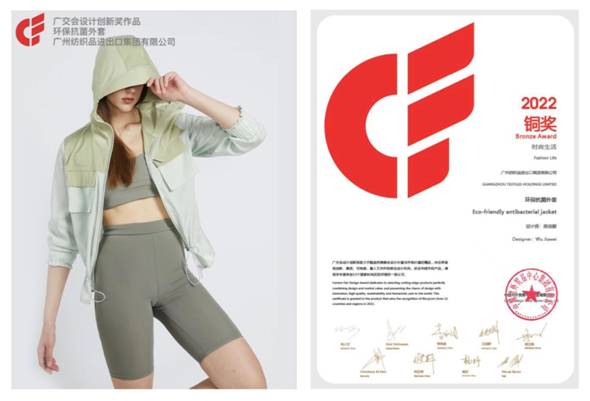 以“树立品质标杆,引导设计创新”为宗旨,广交会CF奖评选活动继续进行。经全球大采购商、各行业权威层层评审,公司全新推出“环保抗菌服装系列”两个自主创新产品入围,其中环保抗菌外套功脱颖而出,荣获2022年广交会CF奖时尚生活类铜奖,这是公司第三次获得该奖项,是对公司产品研发设计、制作工艺等综合能力的肯定。