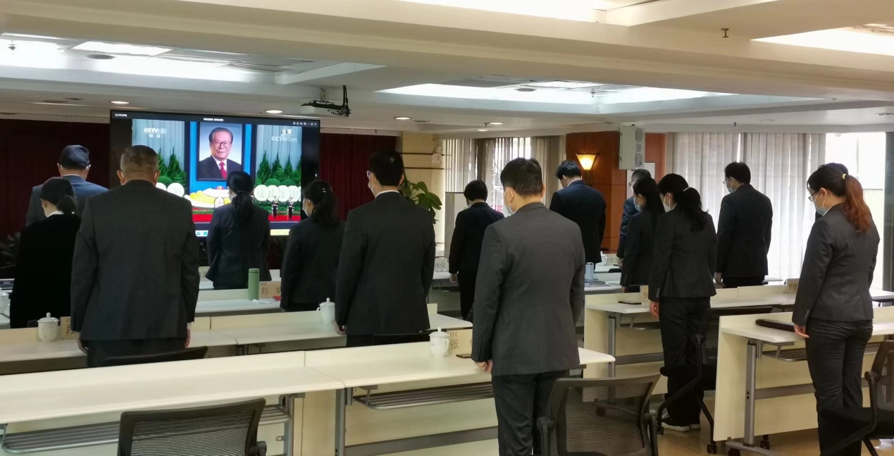 12月6日上午10时,党中央、全国人大常委会、国务院、全国政协、中央军委在北京人民大会堂隆重举行江泽民同志追悼大会。新利在线官网党委组织本部及属下企业党员干部通过现场集中或网络直播等方式收看江泽民同志追悼大会,深切缅怀江泽民同志的卓越功勋和崇高风范。