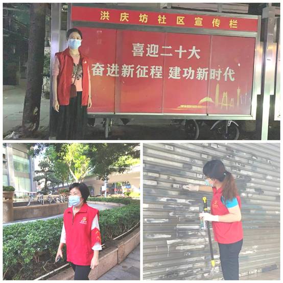 新利在线官网企业发展部副部长严婷、工会经理吴丽蝶参与洪桥街社区平安巡逻;团委书记梁晨协助清理社区商铺牛皮藓
