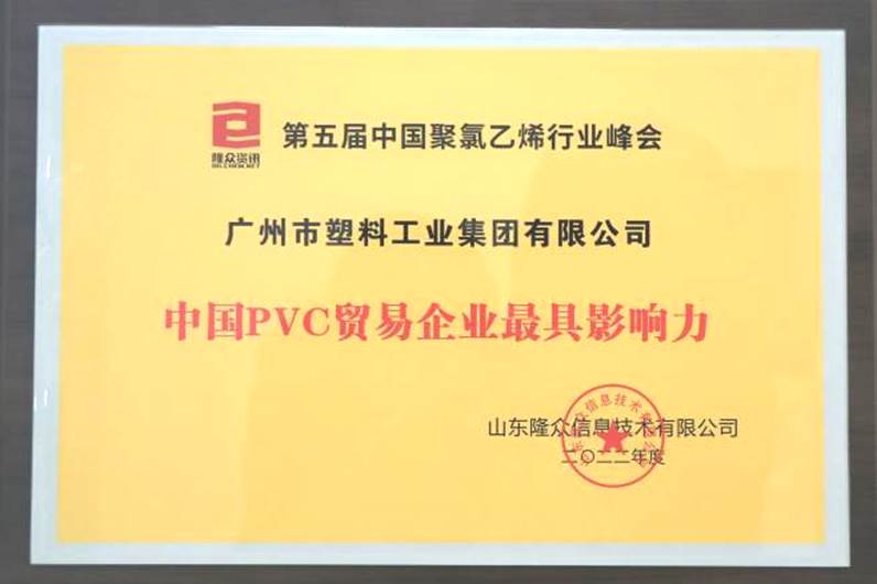 塑料公司荣获“中国PVC贸易企业最具影响力”企业奖