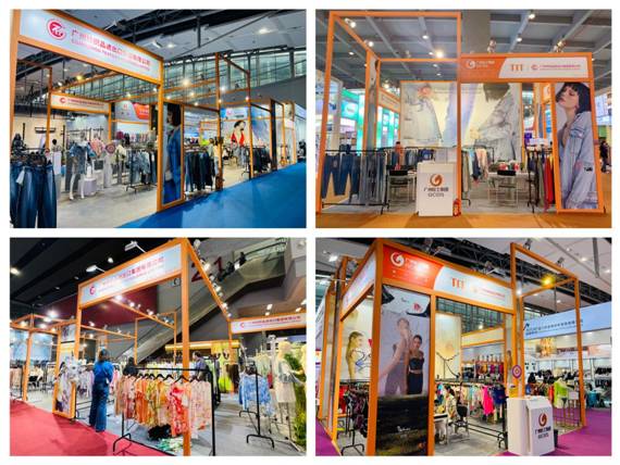 纺织服装系列展位主打简约活泼风格,统一以亮眼活力橙为主色调,高低错落的展位框架设计宛如长城造型,寓意绵长久远。展位上的凸显产品风格的巨幅海报吸引了不少客商驻足、进展位洽谈。