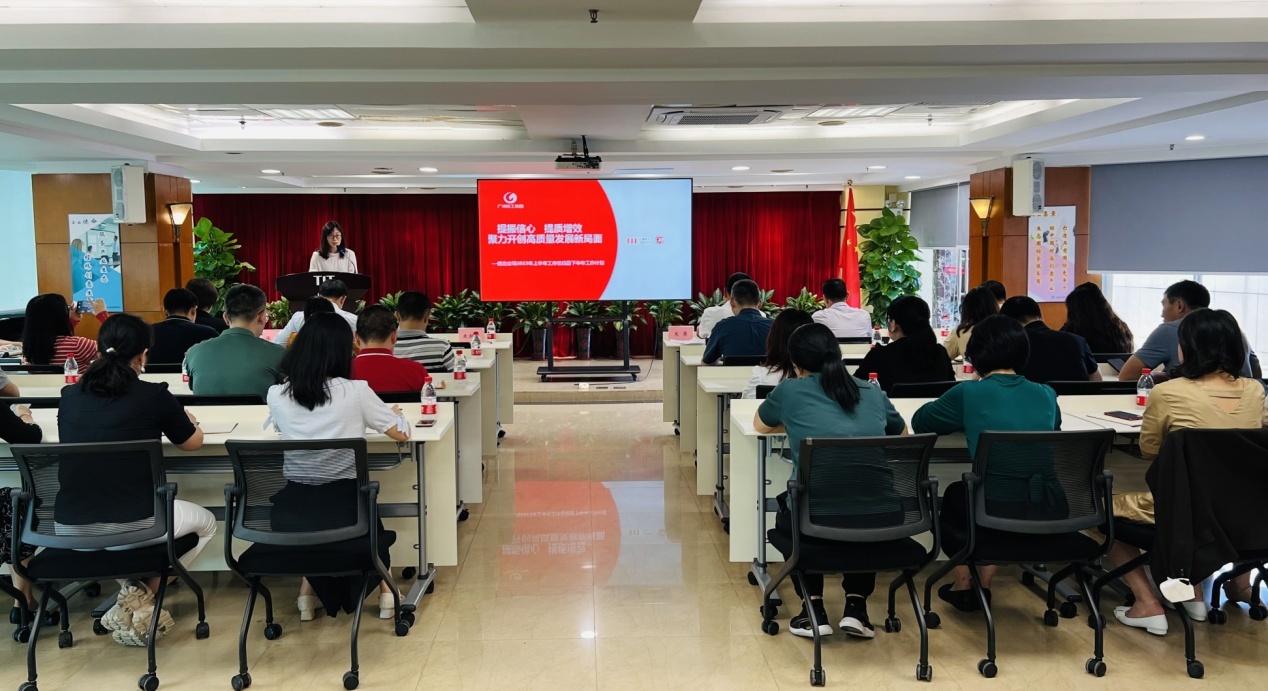 2023年7月21日下午,广州纺织品进出口集团有限公司在广德大厦15楼召开2023年半年工作会议。纺出公司党政领导班子、中层干部参加了会议。会议由纺出公司副总经理、工会主席张菁主持。